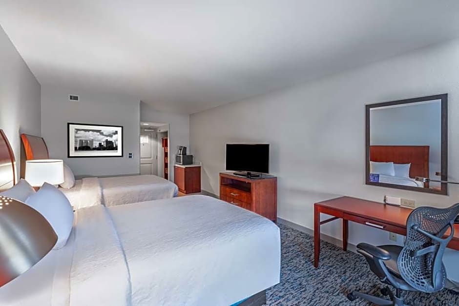 This hearing accessible hotel room features two queen-sized beds, a visual alarm, and notification devices for the doorbell or door knock and incoming telephone calls. The ergonomic Mirra chair by Herman Miller is good for your back and better for work. Enjoy your favorite shows on our 32-inch HDTV. There's also a microwave, refrigerator, and coffee/tea maker to help you feel at home. And for conducting business, our rooms ensure your productivity thanks to the complimentary WiFi access, two telephones with dataport and voicemail, and electrical outlets at desk height. Any corresponding photo may not reflect the specific accessible room type or room feature.